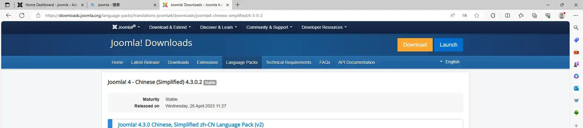登录后台后第一步先安装中文语言包,去到Joomla官网下载中文语言包